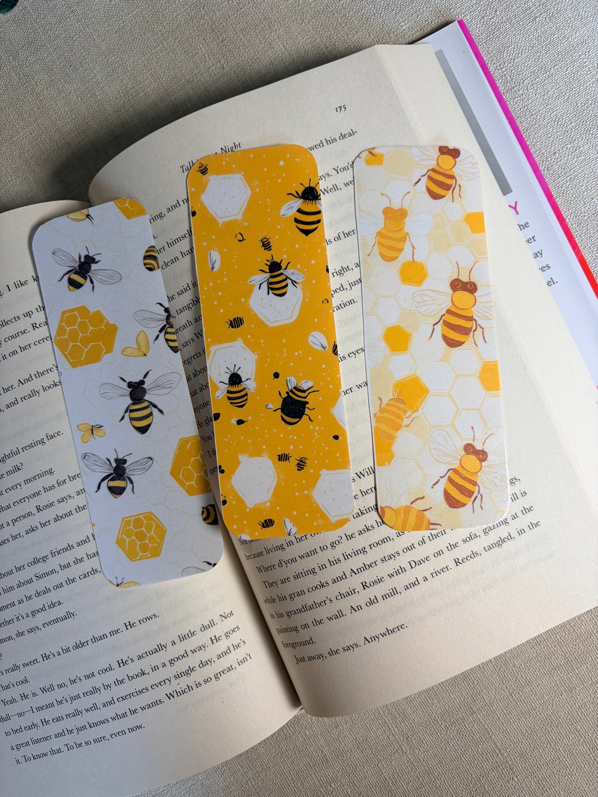 De Busy Little Bees boekenleggerset heeft warme honingtinten, schattige bijtjes en speelse honingraatpatronen — perfect voor lezers die houden van natuur, zon & cozy vibes.