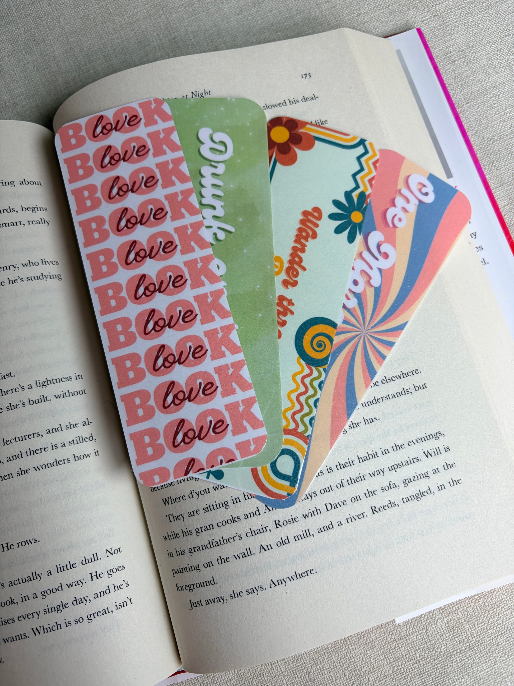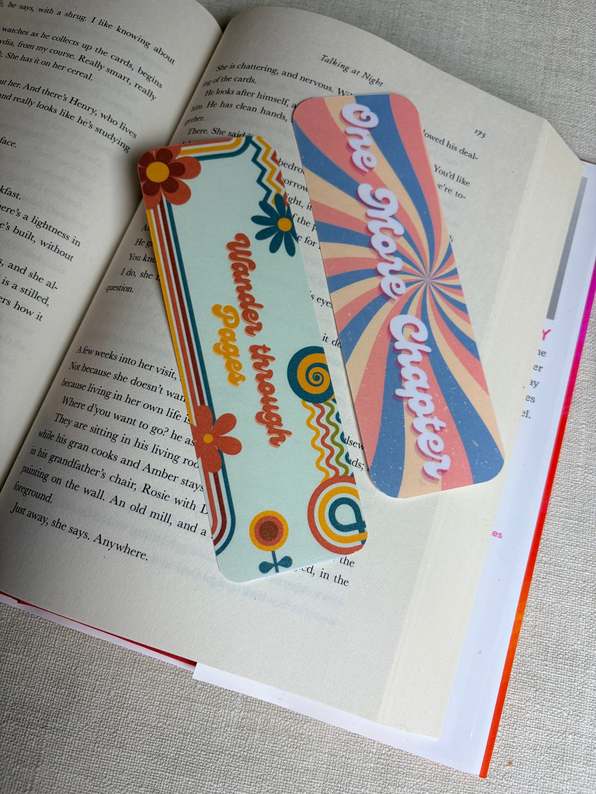 Deze kleurrijke, retro-vibe boekenleggers zijn er om je eraan te herinneren dat lezen mag voelen als een mini-vakantie voor je hoofd 🌼✨