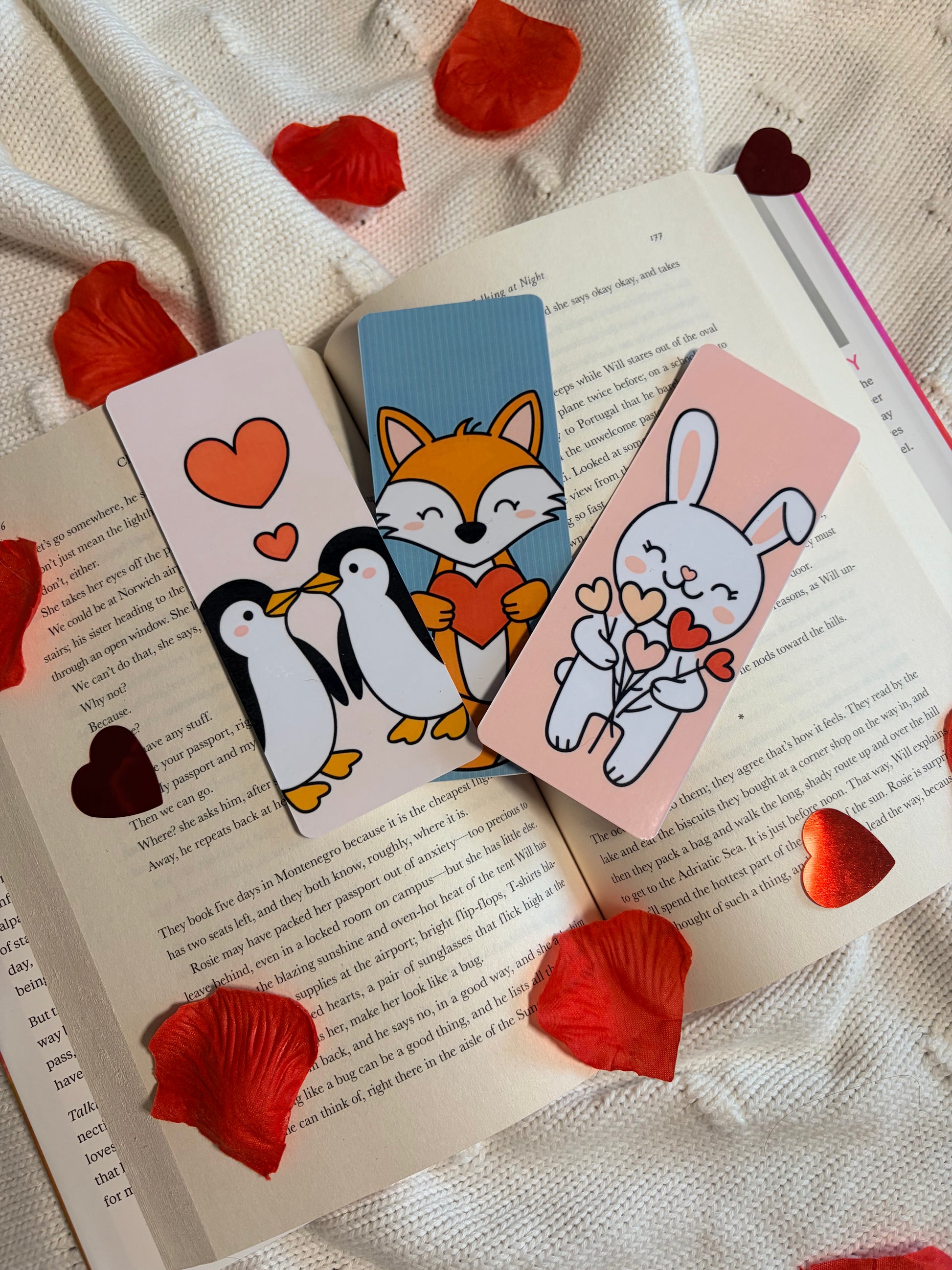 Op zoek naar een klein cadeautje dat meteen een glimlach geeft? Deze Valentijns Special boekenleggers zijn gevuld met cute love vibes: een verliefd pinguïn-koppel, een lieve vos met een hartje en een schattig konijntje met bloemetjes. Zachte kleuren, warme details en perfect voor jouw cozy reading moments.